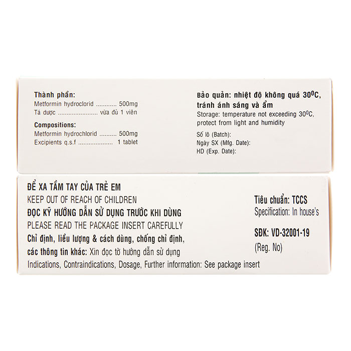 Liều khuyến cáo: Liều khởi đầu đối với bệnh nhân đang không sử dụng metformin là 500 mg, một lần/ngày, dùng đường uống. Nếu bệnh nhân không gặp phản ứng có hại đường tiêu hóa và cần phải tăng liều thì có thể dùng thêm 500 mg sau mỗi khoảng thời gian điều trị từ 1 đến 2 tuần. Liều dùng của metformin cần được cân nhắc điều chỉnh trên từng bệnh nhân cụ thể dựa trên hiệu quả, độ dung nạp của bệnh nhân và không vượt quá liều tối đa được khuyến cáo là 2000 mg/ngày.