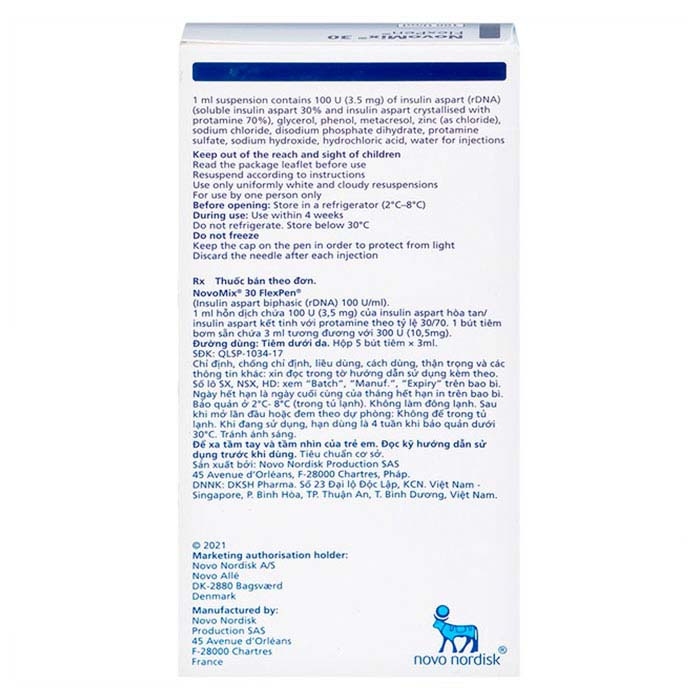 Kim tiêm và NovoMix 30 FlexPen không được dùng chung, ống thuốc không được nạp lại. NovoMix® 30 không được sử dụng nếu hỗn dịch khong có mau trấng đục đồng nhất. Sự cần thiết của việc làm đồng nhất hỗn dịch NovoMix 30 FlexPen ngay trước khi tiêm phải được nhấn mạnh cho bệnh nhân.