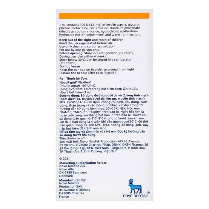 Đọc kỹ Hướng dẫn sử dụng NovoRapid® FlexPen® đi kèm. Bạn phải dùng bút tiêm insulin như được mô tả trong hướng dẫn sử dụng.