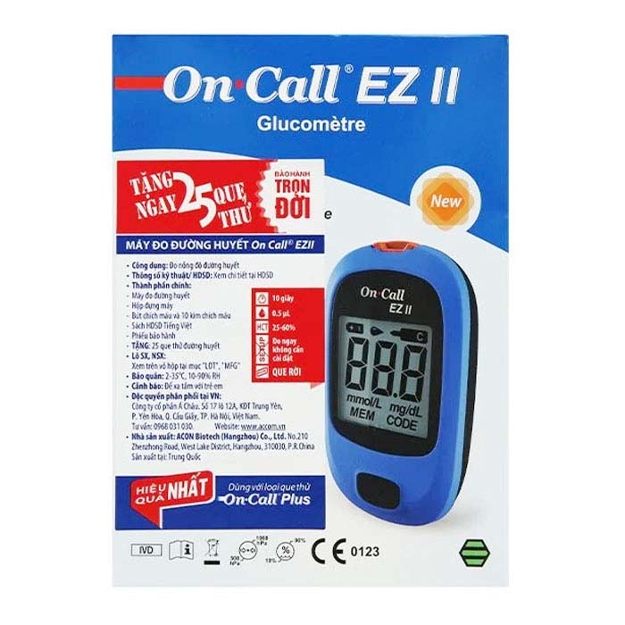 Máy đo đường huyết On Call EZ II với công nghệ đo ứng dụng cảm ứng sinh học tiên tiến, cho kết quả chính xác đến 99%. Máy được thiết kế gọn nhẹ, thao tác sử dụng đơn giản, thuận lợi cho bệnh nhân tiểu đường tự đo đường huyết của mình ở mọi lúc, mọi nơi.
